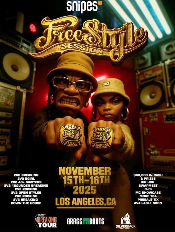 Don't miss it and tell a friend! Big ups to our partners UDEF, Pro Breaking Tour, Gr818ers, Bgirl City, Youth Breaking Championships, Outlaw Rock Dance Forum, StanceElements as well as our sponsors Snipes USA, Red Bull, Silverback Bboy Events and more.
